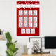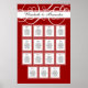 Choose any colour you want for your wedding or annivesary dinner party seating chart. (Change background colour in customization options) Easily customize the layout with the names of your guests. You can seat beween 6 and 9 guests at each of table, meaning that this chart can help you to seat between 90 and 135 guests. The red background colour is customizable. You can make this design perfectly match the colour scheme of your event. Why not frame one as a souvenir? We've picked a standard size for reasonabily priced framing.