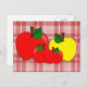 Red and Yellow Apples on Red Plaid Postcard