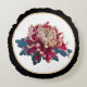 Red and yellow chrysanthemum illustration black round pillow