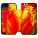 Phone Wallet Case colourful composition with curly tulip bright and shiny two colours. The image is a close capture, or macro shot, that exposes very clearly the petals sophisticated architecture with finely incised edges, thin texture lines and complicated red yellow intrications. The incised edges and vibrant colour palette remind of a sparkling parrot, that's the origin of the other name of the flower, parrot tulip. Also known as "curly Sue" or fringed tulip, this lovely flower shows intense, flamboyant colours almost glowing under the mid day sunrays of May.