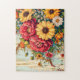 Red and Yellow Garden Flowers on Wood Jigsaw Puzzle