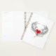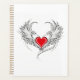Coeur rouge peint de façon artistique avec ailes d'ange gris, décoré de contour lisse noir.