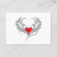 Artistically painted red heart with angel wings grey, decorated with black smooth contour.