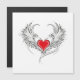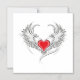 Artistically painted red heart with angel wings grey, decorated with black smooth contour.
