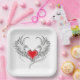 Artistically painted red heart with angel wings grey, decorated with black smooth contour.