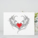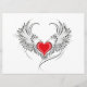 Artistically painted red heart with angel wings grey, decorated with black smooth contour.