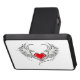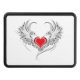 Artistically painted red heart with angel wings grey, decorated with black smooth contour.