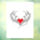 Artistically painted red heart with angel wings grey, decorated with black smooth contour.