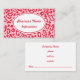 A fun red and pink leopard print decorates this professional business card. Customize this business card to suit your needs. Change the text, font size, etc...The design is from original art. Use this stylish business card for a bakery, consultant, boutique, fashion, clothing, alterations, decor, boutique, makeup artist, cosmetologist, candy, hair stylist, salon, spa, nail salon, home decor, interior design, musician, etc...