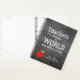 Custom teacher planner with red apple and inspirational white typography script quote "Teachers change the world one child at a time" on a chalkboard background. Personalize with your teacher's name and text!