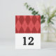 Classic and elegant Argyle Wedding Table Number Postcard with a simple red diamond argyle pattern background. Easy to customize with your wedding details. For more customization options, click on the Customize It button.