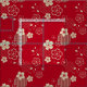 Red Asian pattern with spring flowers Fabric
