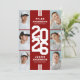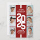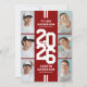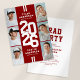 Modern red athletic joint graduation party invitations featuring an eye-catching class year layout in a varsity font, a photo collage of the grads, two white stripes, their names, school/college, and an easily personalized double celebration template, these sporty invites will make your party a memorable one.