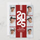 Modern red athletic graduation party invitations featuring an eye-catching class year layout in a varsity font, a photo collage of the grad, two white stripes, their name, school, and an easily personalized party invite template, these sporty invites will make your celebration a memorable one.