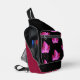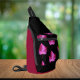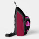 This black and dark red crossbody sling bag with zippered pocket that features a red, autumn Maple leaf pattern on a black background goes where you go when biking and hiking. Side panels are a dark red. Back of sling bag is black. A colourful, botanical design!