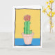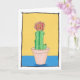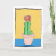 This cute art card has an art drawing of a red ball cactus. The cactus is in a pinky beige flower pot on a yellow and blue background with a black line surround. The background of the card is white. You can personalize the card with your own message inside, or leave blank. The artwork is original and only available from The Art of Being Beth at Zazzle.