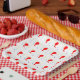Red balloons with colourful confetti pattern paper plate