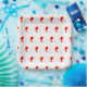 Red balloons with colourful confetti on white background pattern design.