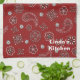 Bring your western theme full circle with these kitchen towels. They have a red, black, and white bandana pattern on them. You customize your name in the corner.