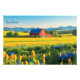 A warm, impressionistic landscape capturing the timeless beauty of the countryside. A classic red barn stands proudly among golden fields and wildflowers, framed by lush green foliage and distant blue mountains under a clear sky. The soft, late-afternoon light creates a peaceful, nostalgic atmosphere that celebrates the charm of rural life. Perfect for farmhouse décor, living rooms, or anyone who loves nature-inspired art.