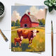 Red Barn Farm Animals Cow Painting Postcard