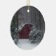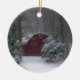 Red Barn in the Snow Ceramic Ornament