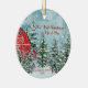 Red Barn Pine Trees Snow Our First Christmas Photo Ceramic Ornament