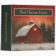 This stunning farmhouse style binder notebook features a red barn with a golden star on it at night, with stars twinkling in a reddish sky. Green trees, with snow on their boughs, frame the sky, and snow is covering the ground. The image appears on the front and back.