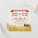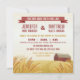 A stylized country field of golden wheat and red barn complete this rustic yet modern wedding invite. All of the text can be changed by customizing. The back of the card has more room for additional information and is also decorated. Please check by store for more wedding invitations. Original illustration by pj_design.