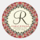 Red Batik Lace Monogram Wedding Classic Round Sticker