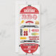 A red kettle barbecue grill with a light woodgrain background. This fun barbeque party invite is decorated with banners, mustard & ketchup bottles, hotdog on a fork, paper plate, fork & knife, hamburger, corn, and chicken leg. The back of the card is decorated with a cute gingham pattern. Customize with your own text. Original Illustration by pj_design / jammydesign.