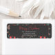 Elégant rouge Joyeux Noël Line Art étiquette de adresse de vacances. Avec arrière - plan noir moderne brillant et feuilles d'eucalyptus et des baies rouges, des flocons de neige et des étoiles. Avec une calligraphie de script stylisée fantaisiste.