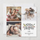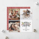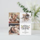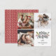 Modern Merry Christmas script Square photo card features red berries, green botanical leaves with a red knitting pattern on the back.