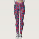 Leggings featuring elegant floral pattern, red berries and blue leaves. Design elaborated from handmade tissue paper collage.