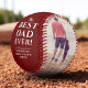 Modern Red Best Dad Ever Father`s Day Two Photo Collage Baseball. This modern custom and personalized baseball is a perfect gift for a dad or a new dad on a father`s day. The best dad ever two photo template baseball. Personalize it with two photos and names. The background is red and the text is trendy white typography. You can change any text on the baseball or erase it.