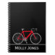 Red Bike with Name on Black Notebook