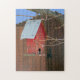 A red birdhouse pictured against wooden fence under a vivid blue sky is the image in this jigsaw puzzle. Fun for the whole family.