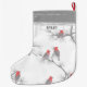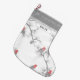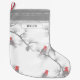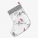 Christmas stocking features a festive Christmas pattern made of red birds on grey branches on a white background paired with chic black typography for your custom name. Includes the same design on both sides of the stocking.