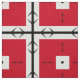 Seamless geometric pattern featuring geometric shapes in red and black on a white background.