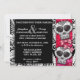 Red Black and White Sugar Skull Wedding Glitter Invitation