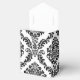 This elegant boxes feature a foliage damask design. Black and White adds a formal touch. Personalize these favour boxes with your names and wedding date. These favour boxes also work well for bridal shower parties.