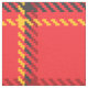 Red with black and yellow geometric plaid pattern.
