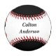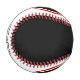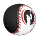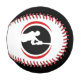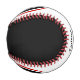 A silhouette cutout baseball player at bat is set against a black circle background, and bordered by bright red. The image appears on two sides, with your custom text in the middle. The image and text are placed on a white background. The other half of the ball is black, which contrasts nicely with the bright red stitching. Your baseball player or fan will love having his or her own personal ball! *Clip art used in this design is copyrighted by Encore Software, Inc., which permits use to its licensors. All rights reserved.