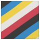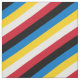 Red, black, blue, yellow and white striped pattern fabric