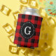 Red Black Buffalo Check Plaid 1I Monogram Can Cooler