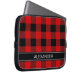 Red Black Buffalo Check Plaid Name Monogram Laptop Sleeve