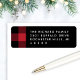 Les étiquettes d'adresse de retour de vacances comportent du texte personnalisé blanc qui peut être personnalisé avec un accent arrière - plan à motif de buffle rouge et noir tendance.