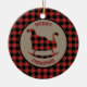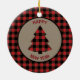 Red Black Buffalo Plaid Sleigh and Tree Ceramic Ornament