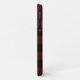 This modern and trendy red and black Buffalo Plaid cell phone case has three large white snowflakes on it and customizable text, making it perfect for a Christmas or winter birthday gift.