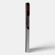 Stylish plaid iPhone case done in the classic black and red Cunningham clan tartan plaid pattern. Graphics of a brushed aluminum with a black border decorates the left bottom of the case. Dark grey text is ready to personalize for yourself or as a great gift idea.